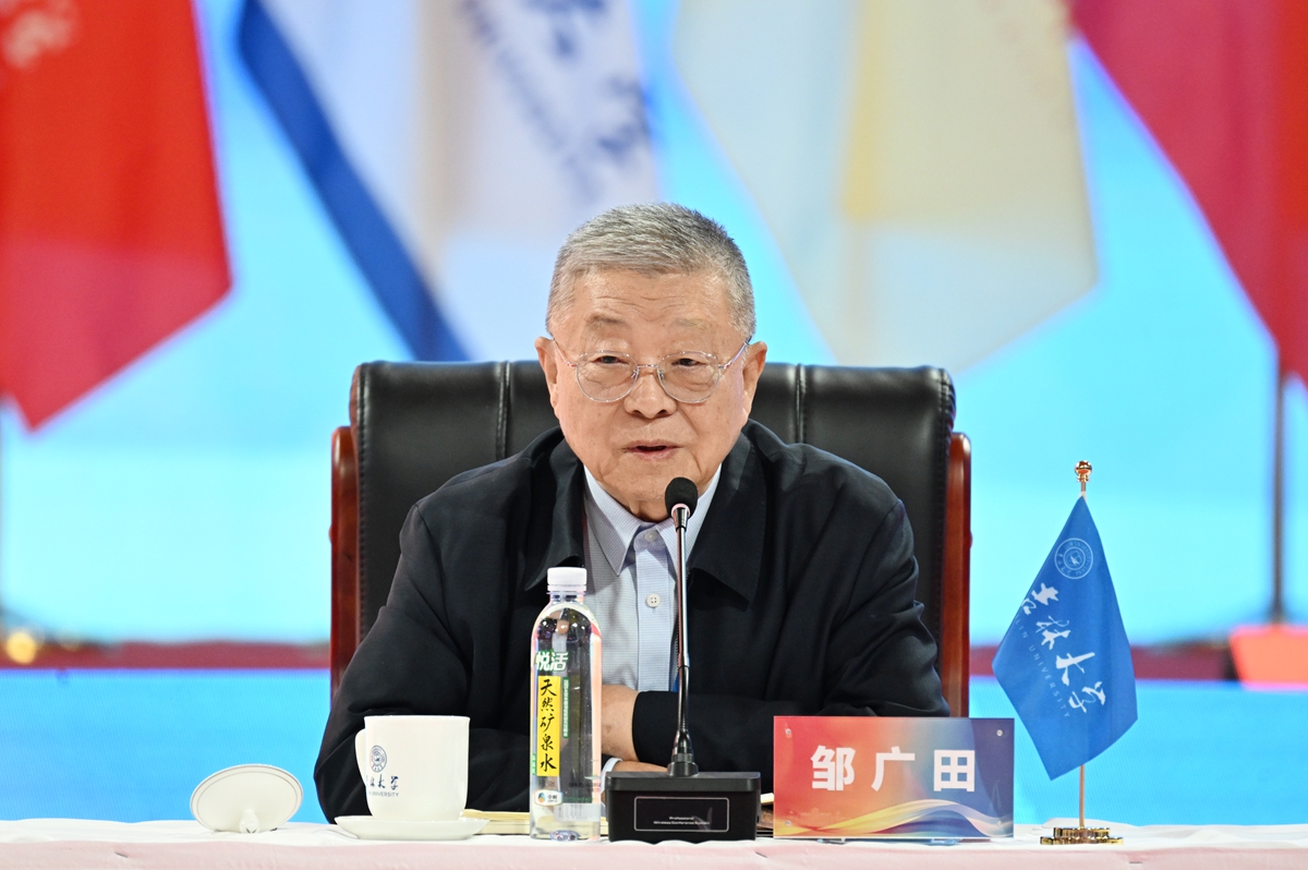 邹广田建议要倾力打造有自己特色的学科群,坚持“四个面向”,坚持教学、科研并重,形成学科交叉融合体系。