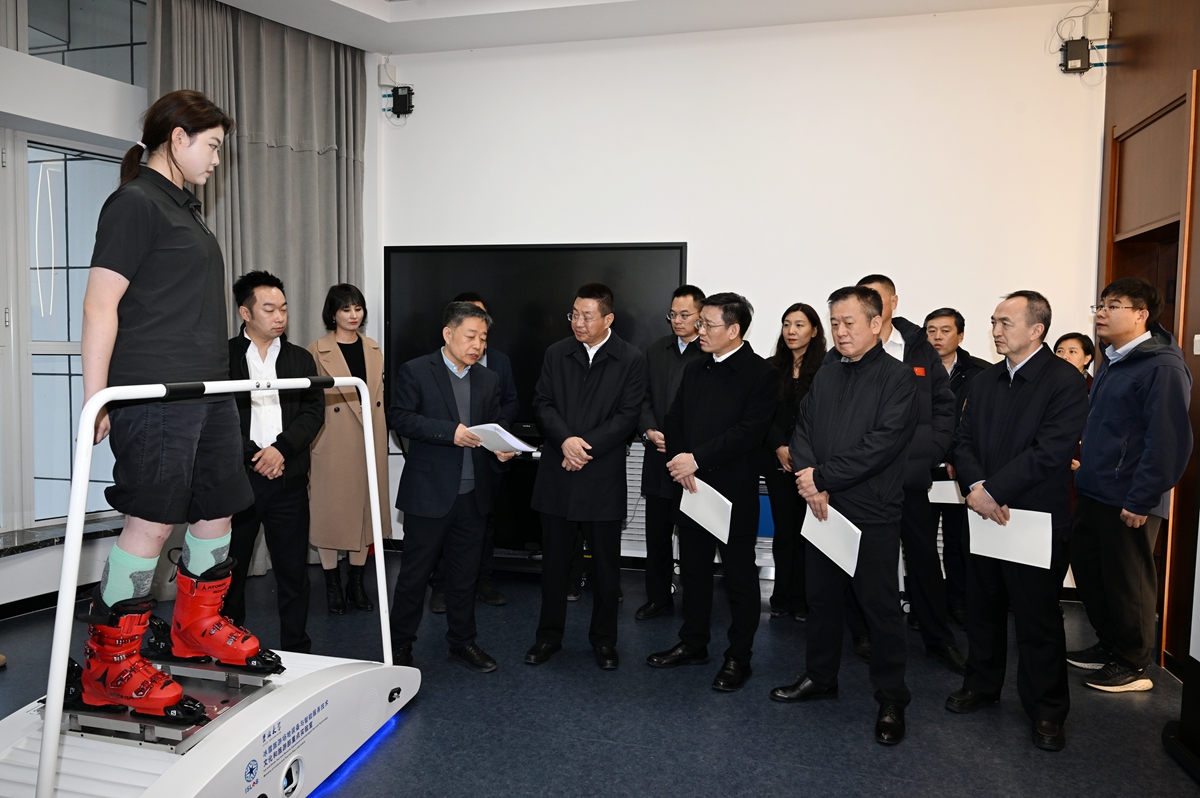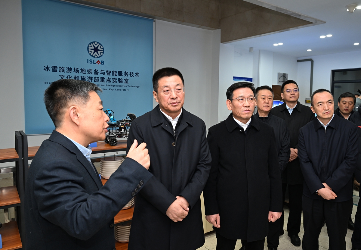 “冰雪旅游场地装备和智能服务技术”文化和旅游部重点实验室,是全国冰雪旅游方面唯一部级重点实验室,是吉大第一个“新文科+新工科”融合的部级重点实验室。王子联一行走进实验室,实地了解实验室运行和中国冰雪系列教材建设进展情况,参观智能全季室内滑雪场样机、冰雪柔性可穿戴装备、数智雪场无人空地协同装备,观摩滑雪模拟教学演练,听取实验室代表性成果和“十五五”发展规划情况汇报。王子联鼓励科研人员要紧密结合国家战略所需、吉林发展所需,推进教育、科技、人才一体谋划,以冰雪科技和产业需求为导向,深入开展理论和应用技术研究,推动吉大科技成果在吉林就地高质量转化,激发高质量发展内生动力,打造吉林省科技创新的新高地。