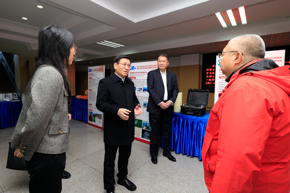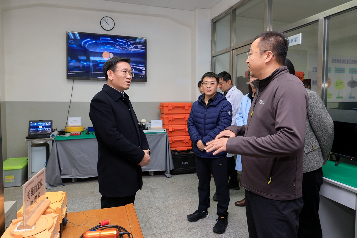 在仪器科学与电气工程学院,田辉参观了学院成立20周年科技成果展,考察了量子重磁传感器工艺与测试平台、地震勘探传感器研究及测试室等,听取了关于人才引进、平台建设、科研攻关和成果转化等情况的介绍。田辉鼓励大家聚焦星、空、地、海、井,全面服务国家战略,要面向未来社会信息化、智能化需求,依托学校相关学科群优质资源及地学仪器领域优势特色,发挥深部探测与成像全国重点实验室重要策源地作用,探索高质量人才培养体系,推进高水平科学研究与成果转化,加强高层次人才队伍建设,向着深地、深海、深空等国家战略方向进军。
