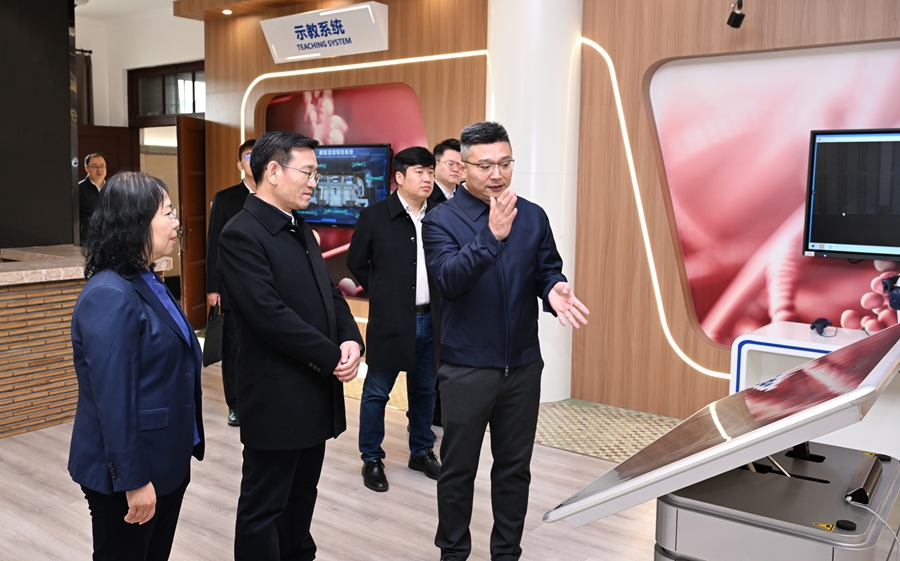在白求恩第三临床医学院,田辉实地走访院史馆、科学研究中心和临床技能培训中心,深入了解学院历史沿革、科研平台建设与临床教学体系运行情况,看望慰问一线医护人员,听取工作汇报。在科学研究中心,田辉强调,要瞄准世界科技前沿,聚焦国家重大战略需要,以项目为牵引、以人才为基础、以平台为支撑,扎实推进医学教育创新发展,全力推动医学学科与其他学科的交叉融合,力争在重大原创性成果、关键核心技术研发等方面取得新突破。在临床技能培训中心,田辉现场观摩急诊房颤救治演练,强调要强化临床教学质量,以提升医学生的岗位胜任力为主要目标,培养卓越的临床医学人才,为医学事业的发展贡献更多力量。