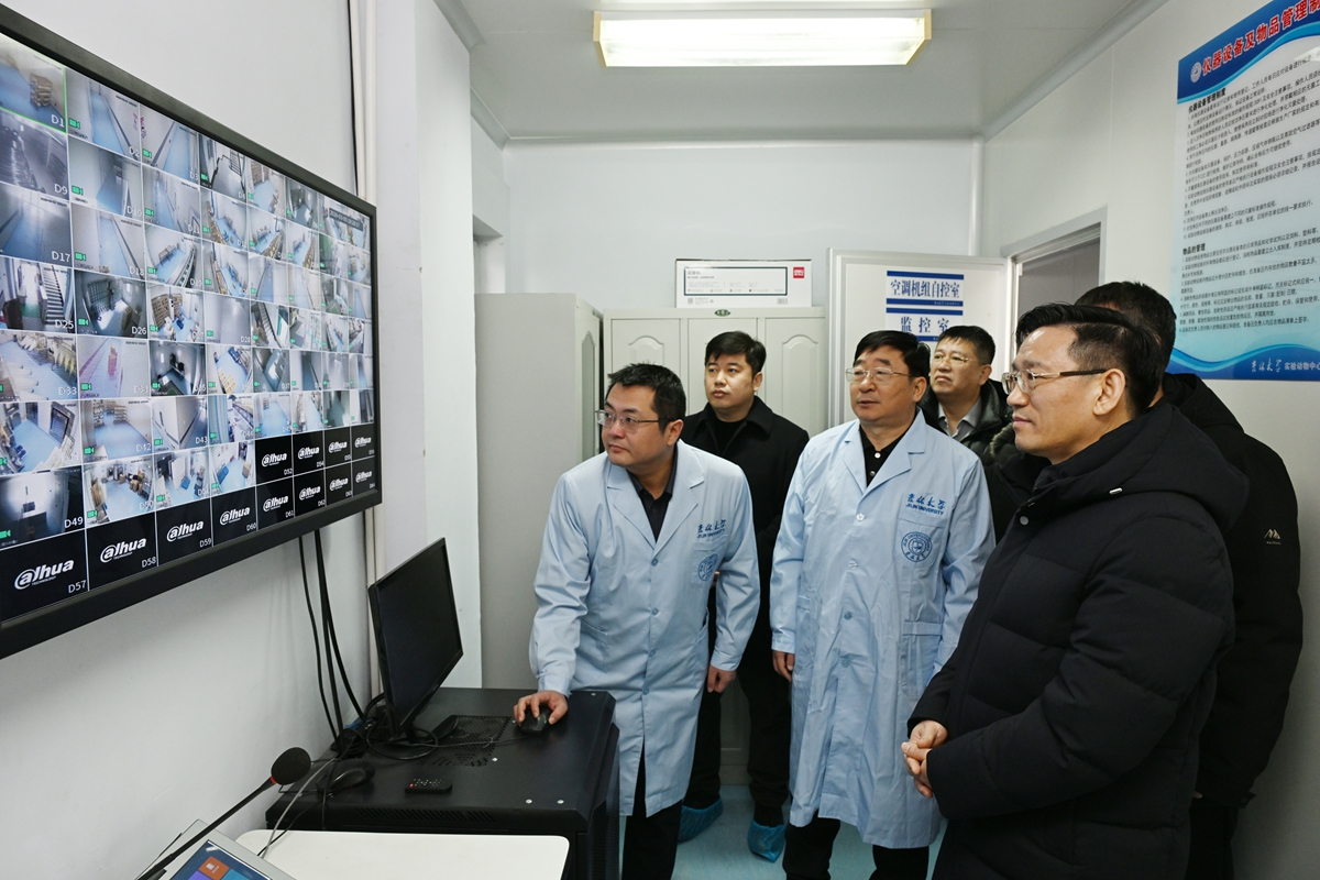 在动物实验中心,田辉实地检查实验室安全管理情况,调研了解实验中心发展建设情况,听取实验室运行工作汇报,详细询问安全隐患排查和实操培训情况。他强调,实验工作要在保证科学规范的前提下,将安全放在首要位置。在胚胎工程室,他与正在进行育种试验的师生交流,勉励大家要坚持以国家战略需求和东北振兴发展为导向,以科技创新推动产业创新,面向产业需求共同凝练科技问题、联合开展科研攻关、协同培养科技人才,为助力实现高水平科技自立自强贡献力量。
