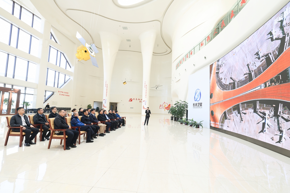 在长光卫星负责人的陪同下,校领导班子成员实地参观了通信卫星研制、光学加工、光栅刻划、相机装调、卫星总装测试等生产试验区域,深入了解卫星研发制造、运营管理和遥感信息服务于一体的全产业链商业模式,现场观看了卫星遥感技术在农林、水利、环保、金融等领域的应用展示。田辉、张希详细询问了企业在技术创新、产品研发、市场应用等方面的进展情况,全面了解校企合作和毕业生在企业的发展情况,并与企业相关负责人就深化优势互补、推动强强联合,加强原始创新和关键核心技术攻关,服务高水平科技自立自强,推动人才培养、产学研合作、科技成果转化、创新创业平台建设等进行深入交流。