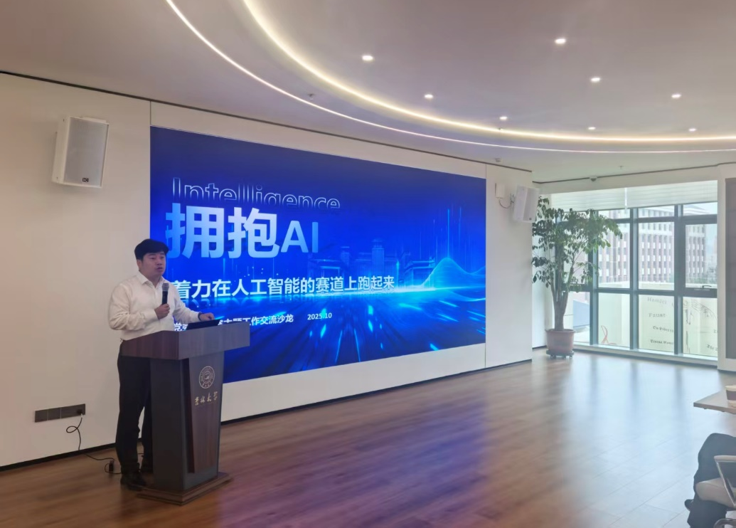 为深入贯彻落实学校党委关于“着力在人工智能的赛道上跑起来”的部署要求,10月11日,党委办公室在鼎新图书馆“黄大年茶思屋”举办首场专题工作沙龙,邀请计算机科学与技术学院教授、图书馆馆长徐昊作主题报告,共同深入探讨人工智能时代高校管理模式和教育方式变革的机遇与挑战,交流研讨党委办公室业务如何拥抱AI、充分利用人工智能提高工作质效。本次工作沙龙由党委办公室主任、党支部书记郭松洋主持。